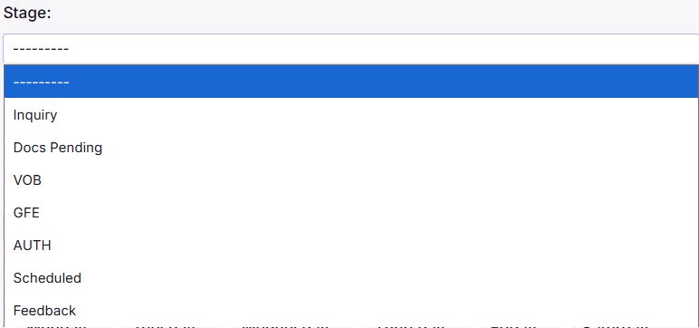 (Example: Docs Pending, VOB Pending, AUTH, etc.)