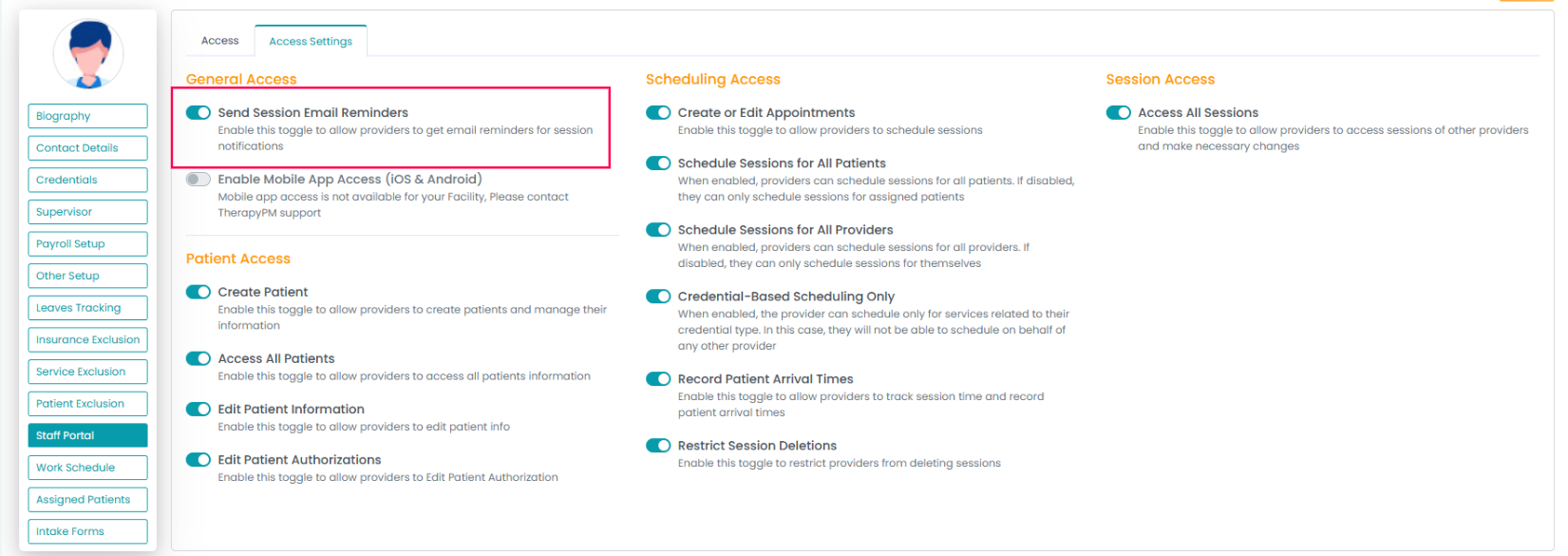 - Toggle off Email Reminder to stop appointment reminder emails from being sent to the staff member.