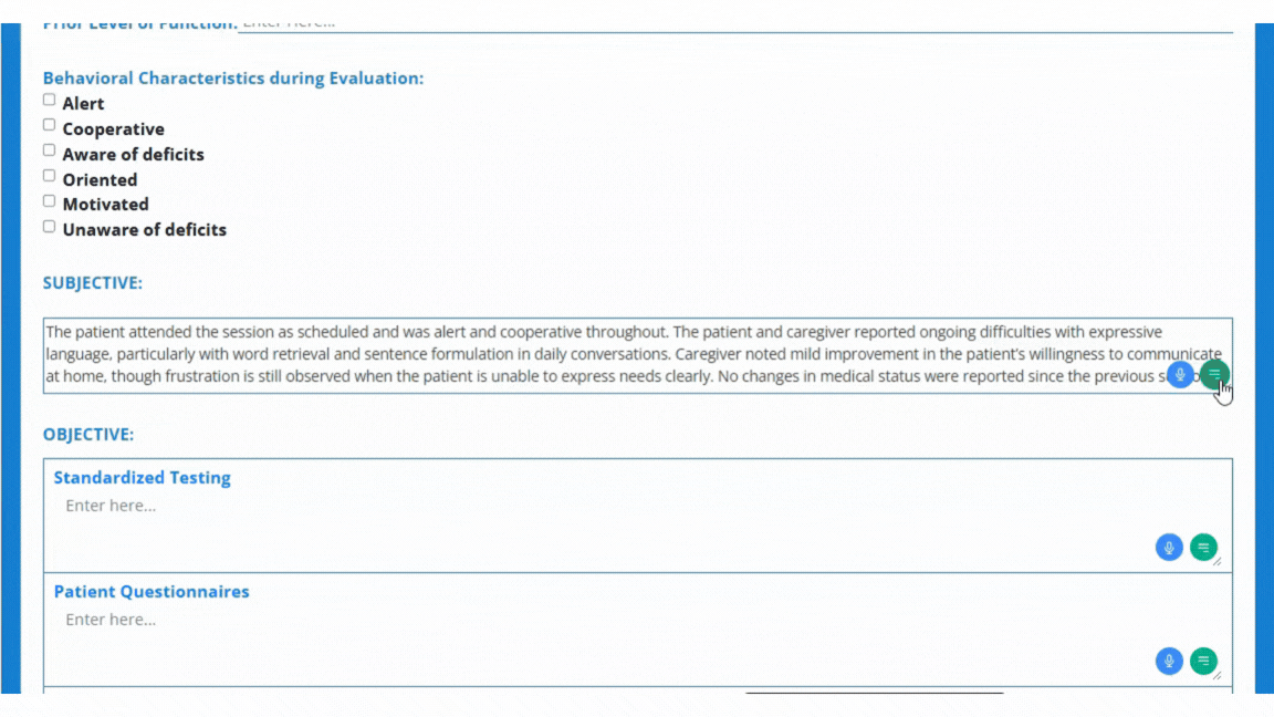 This article explains how to use the built-in voice recorder and AI-powered summarization feature while adding session notes. These tools help you document sessions faster and convert spoken input into professional, summarized notes.