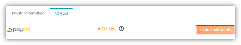 - From the ACH List tab, access the orange Add Bank Details button.