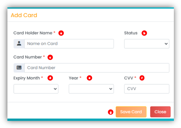 - Status: Choose whether the card status is Active or Inactive.