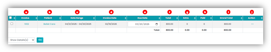 - Extra: This column displays any additional amount added to the invoice, such as a late fee or other applicable charges.